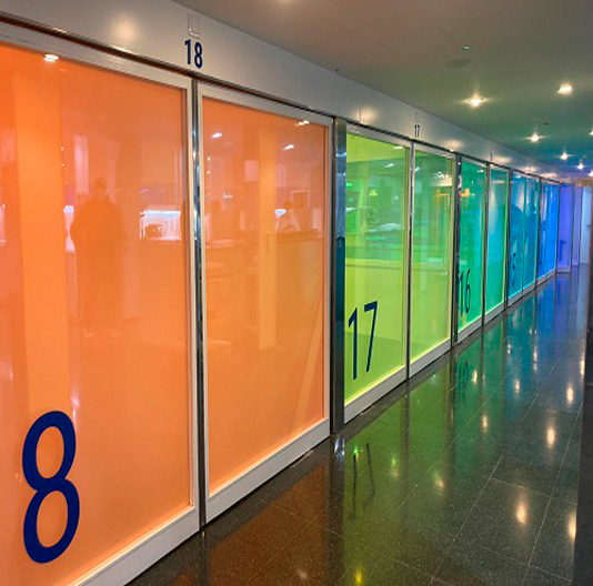 Un dels aspectes més innovadors és la reforma completa del sistema d’enllumenat de l’espai, que ara compta amb il·luminació circadiària tant a l’interior dels boxs com a la zona de treball dels professionals. Així els pacients poden mantenir el ritme dia-nit i pels professionals es programen cicles d’il·luminació de vuit hores, per tal que a cada torn de treball aquesta configuració els hi aporti el benefici de poder tenir regulat el seu cicle de treball i descans.